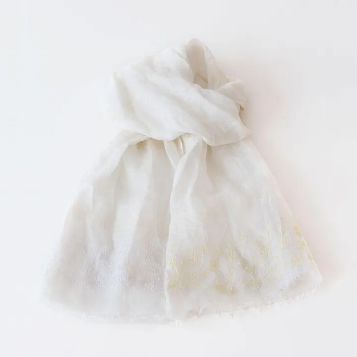 リネンスカーフ リーフボーダー ホワイト