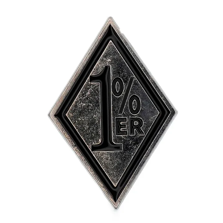 「1%er」(ワン・パーセンター)は、元々法に縛られないアウトロー(無法者)なバイカーが、自らを「全バイカーの1%」と称し、その誇りを表現する言葉です。これは1947年のホリスターの暴動をきっかけに、アメリカン・モーターサイクリスト・ アソシエーションが「バイカーの大半(99%)は善良で、アウトローは一部(1%)だ」と発表したことに端を発しており、これに対しサンフランシスコのバイカーたちが「自分こそがその1%だ」と名乗るようになったのが始まりです。?アメリカのバイカーはベストを飾ってオリジナリティを表現!! 本場のバイカーのベストには、ペタペタと色んなものがつけてありますが その中でもワッペンについでスタンダードなのがこのピンズ!! 定番のバイカーデザインピンバッチです。 お友達やバイクチームへのプレゼントとしても最適です。 ご注意 ▼海外輸入品ですので小さなキズや汚れ等がある場合がございます。 ▼多少の個体差があります。サイズは目安ですので、予めご了承くださいませ。 ▼本商品は加工の為、塗装のはがれやキズのような仕上げがあります。また使用していくと金属摩擦でカラーメッキが剥がれることがございます。傷・汚れ等の返品・交換はお受けできかねますのでご了承ください。 ▼色目に関しましては、モニター及びデジカメ性能等の関係で若干異なる場合がございます。 素材:合金、亜鉛めっき エナメル サイズは画像に明記しておりますのでご確認ください。 ※金属製のため、周辺部品に傷を付ける恐れがあります。お取り扱いにご注意ください。※輸入製品につき部分的にキズやダメージがある場合もございます ※金具等の付属品は正しくお使い下さい。  誤った使用および極度の負荷・衝撃がかかった場合は、付属品および製品が破損する恐れがございます。 お取り扱いにはご注意くださいませ。 ※細かなパーツが含まれておりますので、小さなお子様が誤飲されませんよう取扱いにご注意ください。