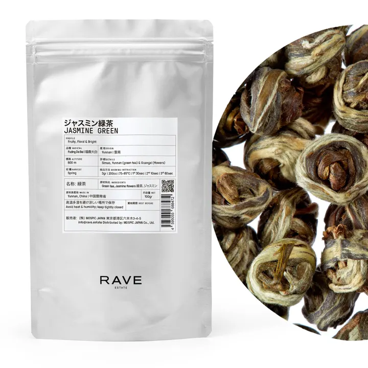 お茶の生まれ故郷・雲南省の春一番の上質な緑茶とジャスミンの花びらを一緒に寝かせて、その花びらを3-4回取り替えることで香料無添加ながら芳醇な香りを実現したワンランク上のジャスミン茶です。とって付けた香りではないので、茶葉とジャスミンが一体になり甘さと清涼感を併せ持ちえぐみが無いキレイな味わいが特徴です。