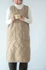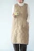 軽くて暖かいキルティング+裏ボアの防寒エプロンです。 左脇のスナップボタンで着脱簡単、かぶりタイプのロング丈ダブリエ。 ベストやちゃんちゃんこの約1.5倍丈でワンピースのようなシルエットです。 深めのスリットが足さばきをよくしています。 厚手のセーターなどの上からでも着やすいように、わきぐりを大きめに作りました。 撥水加工された表地のキルティングの裏にはふわふわで優しい触り心地のボアをあて、しっかりとした着心地に仕上げています。 表地はデニム風の風合いのあるベースプリントに、さらにダリアや千鳥柄も入ったベーシックカラーの幅広い年代の方に着用いただけるデザインです。 デザインのポイントがもう一つ。 それはコーデュロイのパイピング。結構丈のある型なので、着用した際に全体を締める役割もあります。 左右に大きめポケット付き。 胴回りにかなりの余裕がありますので、お腹の大きくなり始めた妊婦さんにもおすすめです。 ※撥水加工は永久的なものではありません。完全防水ではございません。 ★テーブルウェア「ポンポンダリア」シリーズと同柄をセレクトできます。