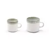 小さめのマグカップとして設計したコーヒーカップMは10cmプレートと組み合わせてカップ&ソーサーとしてもご使用いただけます。 blur(ブラー) blur(ブラー)は、岐阜県の美濃焼きで昔からつくられている「黄瀬戸」という焼き物の技術に端を発しています。浸透性のある金属色素を本焼きする前の素焼きへ色づけする胆礬(たんぱん)という技法があります。 これを応用して、にじむような柔らかい色合いの器をつくることができないかと、まるで織物を染めるような発想からblurの製作がスタートしました。 従来の胆礬は金属色素に銅を使い、にじんだ緑色が特徴であるのに対し、blurではホワイトは塩化ニッケル、ブルーとブラウンは塩化コバルトを使用して、にじみの色合いを表現。凹凸部分の着色は最もこだわった箇所でもあり、筆でムラなく仕上げる職人の技術が生かされています。 こうしてできあがった器は、デイリーに使いたくなるアイテムになっています。