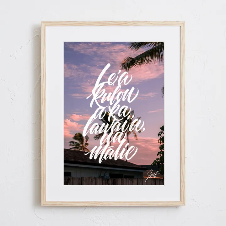 アーティスト -PROFILE- MAHALOVE Surf(マハラブ サーフ) kenigrafia 東京都出身 / Creative art letterer 2019年よりハンドレタリングを主に活動を始め、Blushpen、Rulingpen、Parallelpen、Woodburning、Procreateなどを操りロゴデザインやアート作品の製作に情熱を注ぐ。 MAHALOVE(マハラブ)から派生したブランド 『surf』を手がける。 【作品について】 Le’ a kulou a ka lawai’a, ua mālie ハワイのことわざで「今を楽しみなさい」と表現されています。 mālieの単語では、穏やかな、平穏な、という意味。 私達を魅了する神秘の国ハワイ。 そんなハワイの夕焼け空を美しく写真に収めました。 また、手書きのカリグラフィーがセンスいいアートです。 作品名:Hawaii mālie 手法:写真、デジタル、カリグラフィー ペーパー:高品質半光沢紙 マットカラー:白 マット*:DXホワイト芯 100%バージンパルプ/PH7・中性紙(2mm厚) ※全てのアートにマットがつきます フレームカラー:黒、白、無垢(3種類から選択) ※マット付のため通常とはフレームサイズが異なる規格となります。 【マット*とは?】 アートポスターの周りに挟んだ厚紙の事。 マットを使わない時に比べ余白により広がりが生まれ、作品の新たな一面を引き出せ作品の見栄えがグッと良くなります。また、額縁のガラス面と作品が直接触れたままにしておくと、くっついて作品を傷つけることがあります。マットを使用することでガラスと作品の間に空間ができ、作品を保護することができます。ブランドコンセプトにより全てのアートにマットがつきます。 ー ファッションのようにアートを ー 私達が掲げるコンセプトです! 毎日着替えるファッションの様に、アートも気軽に飾り変えて欲しい... 一旦飾り終えたアートにも光を当ててほしい... ポスター単体、またはリピートで中身だけのポスターを購入された方に"専用のハンガー"をセットでお届け。 「今までに無い!新しいアートの飾り方を提案」 飾る事がなくなった前のアートをハンガーにかけて洋服と一緒にかけてもらう。 その日の気分や、モチベーションですぐに取り換えられる様に。 もちろん、魅せる収納としても今までにないおすすめの飾り方です。