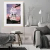 【現代アートポスター】ハワイ 風景景色 ヤシの木 夕焼け カリグラフィー A2(L) フレームセット:無垢 56.1×74.3cm