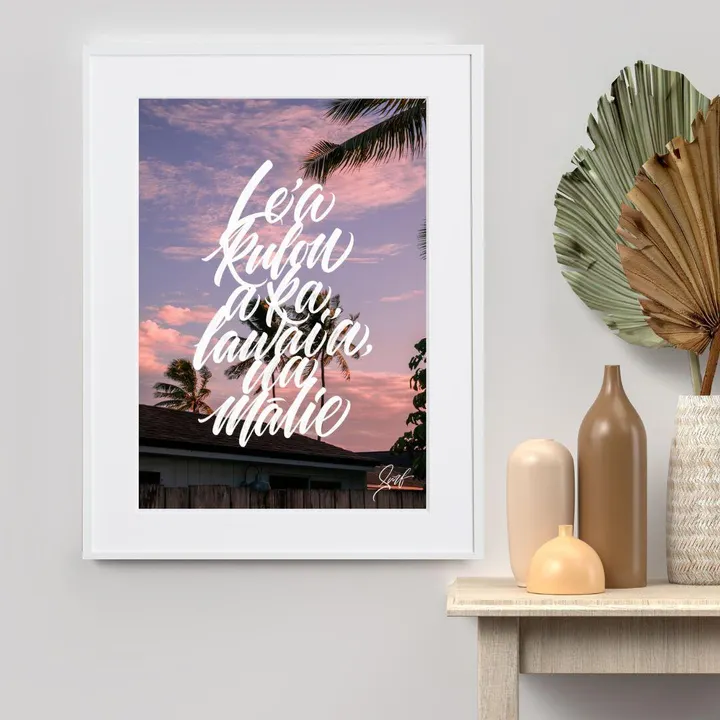 アーティスト -PROFILE- MAHALOVE Surf(マハラブ サーフ) kenigrafia 東京都出身 / Creative art letterer 2019年よりハンドレタリングを主に活動を始め、Blushpen、Rulingpen、Parallelpen、Woodburning、Procreateなどを操りロゴデザインやアート作品の製作に情熱を注ぐ。 MAHALOVE(マハラブ)から派生したブランド 『surf』を手がける。 【作品について】 Le’ a kulou a ka lawai’a, ua mālie ハワイのことわざで「今を楽しみなさい」と表現されています。 mālieの単語では、穏やかな、平穏な、という意味。 私達を魅了する神秘の国ハワイ。 そんなハワイの夕焼け空を美しく写真に収めました。 また、手書きのカリグラフィーがセンスいいアートです。 作品名:Hawaii mālie 手法:写真、デジタル、カリグラフィー ペーパー:高品質半光沢紙 マットカラー:白 マット*:DXホワイト芯 100%バージンパルプ/PH7・中性紙(2mm厚) ※全てのアートにマットがつきます フレームカラー:黒、白、無垢(3種類から選択) ※マット付のため通常とはフレームサイズが異なる規格となります。 【マット*とは?】 アートポスターの周りに挟んだ厚紙の事。 マットを使わない時に比べ余白により広がりが生まれ、作品の新たな一面を引き出せ作品の見栄えがグッと良くなります。また、額縁のガラス面と作品が直接触れたままにしておくと、くっついて作品を傷つけることがあります。マットを使用することでガラスと作品の間に空間ができ、作品を保護することができます。ブランドコンセプトにより全てのアートにマットがつきます。 ー ファッションのようにアートを ー 私達が掲げるコンセプトです! 毎日着替えるファッションの様に、アートも気軽に飾り変えて欲しい... 一旦飾り終えたアートにも光を当ててほしい... ポスター単体、またはリピートで中身だけのポスターを購入された方に"専用のハンガー"をセットでお届け。 「今までに無い!新しいアートの飾り方を提案」 飾る事がなくなった前のアートをハンガーにかけて洋服と一緒にかけてもらう。 その日の気分や、モチベーションですぐに取り換えられる様に。 もちろん、魅せる収納としても今までにないおすすめの飾り方です。