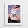【現代アートポスター】ハワイ 風景景色 ヤシの木 夕焼け カリグラフィー A4(S) フレームセット:白 29.4×38.4cm