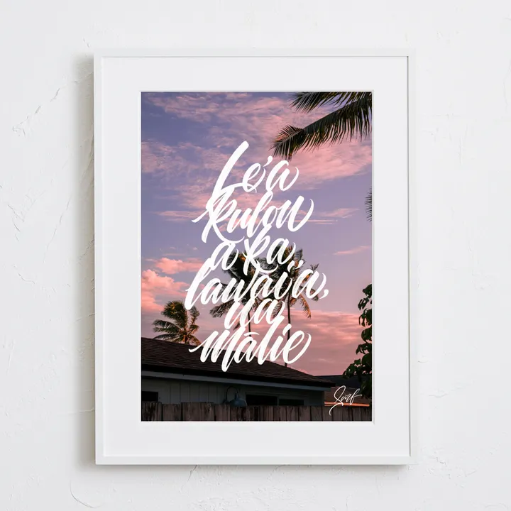 アーティスト -PROFILE- MAHALOVE Surf(マハラブ サーフ) kenigrafia 東京都出身 / Creative art letterer 2019年よりハンドレタリングを主に活動を始め、Blushpen、Rulingpen、Parallelpen、Woodburning、Procreateなどを操りロゴデザインやアート作品の製作に情熱を注ぐ。 MAHALOVE(マハラブ)から派生したブランド 『surf』を手がける。 【作品について】 Le’ a kulou a ka lawai’a, ua mālie ハワイのことわざで「今を楽しみなさい」と表現されています。 mālieの単語では、穏やかな、平穏な、という意味。 私達を魅了する神秘の国ハワイ。 そんなハワイの夕焼け空を美しく写真に収めました。 また、手書きのカリグラフィーがセンスいいアートです。 作品名:Hawaii mālie 手法:写真、デジタル、カリグラフィー ペーパー:高品質半光沢紙 マットカラー:白 マット*:DXホワイト芯 100%バージンパルプ/PH7・中性紙(2mm厚) ※全てのアートにマットがつきます フレームカラー:黒、白、無垢(3種類から選択) ※マット付のため通常とはフレームサイズが異なる規格となります。 【マット*とは?】 アートポスターの周りに挟んだ厚紙の事。 マットを使わない時に比べ余白により広がりが生まれ、作品の新たな一面を引き出せ作品の見栄えがグッと良くなります。また、額縁のガラス面と作品が直接触れたままにしておくと、くっついて作品を傷つけることがあります。マットを使用することでガラスと作品の間に空間ができ、作品を保護することができます。ブランドコンセプトにより全てのアートにマットがつきます。 ー ファッションのようにアートを ー 私達が掲げるコンセプトです! 毎日着替えるファッションの様に、アートも気軽に飾り変えて欲しい... 一旦飾り終えたアートにも光を当ててほしい... ポスター単体、またはリピートで中身だけのポスターを購入された方に"専用のハンガー"をセットでお届け。 「今までに無い!新しいアートの飾り方を提案」 飾る事がなくなった前のアートをハンガーにかけて洋服と一緒にかけてもらう。 その日の気分や、モチベーションですぐに取り換えられる様に。 もちろん、魅せる収納としても今までにないおすすめの飾り方です。