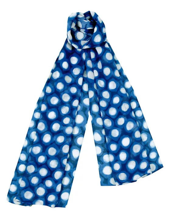 <UV対策>ストール 綿100% ガーゼチーフ TOIRO ドット ブルー