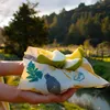 100%オーガニックコットン生地と、ミツロウ、植物性樹脂、ホホバオイル、オーガニックココナッツオイル、マヌカオイル、プロポリスの天然成分で作られた地球にやさしいミツロウラップ。 抗菌力が強い天然の成分で食材を新鮮に保ってくれます。 1番人気のある多用途のマルチなMサイズ。野菜やフルーツの他に、持ち歩くランチのサンドイッチやおにぎり、果物などの軽食に最適です。 使いやすいSサイズから大根も包める程のXLサイズまで展開しているので用途に合わせてサイズを選んでください。 【食品をより長く新鮮に保ちます】 ハニーラップで保存すると、ミツロウのコーティングにより食品が呼吸できるようになり、覆われて密封された状態が保たれるため、食品は長持ちし、味も良くなります。 【洗って何度も使えます】 ハニーラップは使いやすく、お手入れも簡単で、何度でも使用できます。さまざまなサイズがあり、最長 12 か月持続します。 【ニュージーランド製オーガニックコットン使用】 ハニーラップは、ミツロウ、樹木樹脂、ホホバオイルの混合物をブレンドしたGOTS認定のオーガニックコットンから作られています。 野菜・フルーツ・サンドウィッチ・おにぎりなど何でも包める優れもの。柄もサイズも豊富でシーンに合わせて選べます。 食品やお皿、ボウルなどを包み、手の平でゆっくり押さえると手の温度でラップが柔らかくなり、しっかりと蓋ができます。