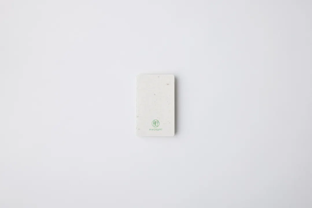 「#wakami_sutenai」を使用したミニ5ノートです。 「#wakami_sutenai」は、段ボール20%、その他工場内古紙を中心としたオール古紙で構成された紙です。 「捨てない」をテーマに制作されたこのノートは、万が一廃棄する際にも糸を外せば資源にできるよう、「糸綴じ中ミシン製本」を採用しています。 ミニ5 20ページ