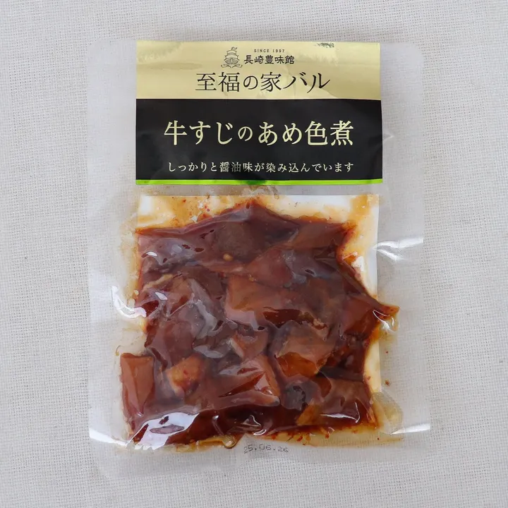 お肉の旨みはそのままに、食感は柔らかく仕上げたおつまみシリーズの1品です。 常温保存ができるので、アウトドアや旅のお供として、常備食としても重宝します。 お酒が苦手な方でも”もう一品欲しい!”という時のおかずとしてもお召し上がりいただけます。 牛すじを甘辛醤油だれでやわらかく煮込みました。温めるとトロッとした食感がお楽しみいただけます。 [お召し上がり方] そのままでもお召し上がりになれます。 湯せん/約5分加熱 電子レンジ/お皿に出してラップをかけ約1分加熱