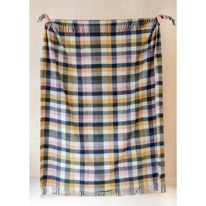 メイン商品のブランケットは、伝統的なタータンチェック柄を現代風にモダンにデザインし、さらに環境に配慮したリサイクル素材を使用しています。
