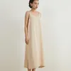 華奢なストラップが大人の雰囲気を醸し出す、贅沢なキャミソールワンピース。身体のラインをすっきりときれいに品良く見せてくれる、タイトすぎないラインが魅力で、細めのストラップがシンプルな中にアクセントを加えてくれるデザイン。ミニマルな印象で1枚で潔く着用したり、ノースリーブトップスやTシャツを合わせるカジュアルスタイルもおすすめ。 サイズ  着丈  バスト(cm)   S   108   88    M   110   92   素材:レーヨン 100% 透け感:なし 生地の厚さ:普通 光沢感:ややあり 裏地:なし 家庭洗濯:可能(ネット使用) 【注意点】 ※撮影商品はサンプルの為、実際の仕様と異なる場合がございます。 ※画像の商品は光の照射や角度、お使いのモニター環境により、実物と色味が異なる場合がございます。スタジオ物撮りの画像が実物の色味に一番近くなっております。 ※予約商品の場合、お届け予定はあくまでも目安となります。 生産の都合上、お届け時期が前後したり実店舗入荷時期とずれる場合がございますので、あらかじめご了承ください。 ※表記サイズは商品の実寸です。 ※布製品の特性上、サイズ表の実寸法は多少の誤差が生じる場合がございますので、予めご了承ください。
