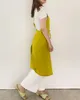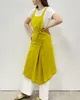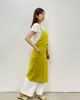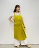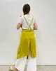 アシンメトリーフルエプロン 英国マーチャン&ミルズのヨーロッパリネン シトラス 深みにある発色の美しさ 胸元は体に添うようカーブして、首紐に繋がるラインを細くしていることで、女性らしい雰囲気を出すとともに、胸元が浮かないので、着けていることを忘れるほどです 首紐は輪になっていて、そのまま結んで頂いても良いですが、首で結ぶタイプは肩が凝るとのお声から、ウエストに付けた短い紐に首紐を通してお使い頂くようにしています ご自分のサイズに合わせた長さに調節できます アシンメトリーの裾 左脇に大きめのタックを取り、タックに向かって斜めにカットした裾は、前身ごろは長めに取り、後ろは動きやすいように短めにしています 裾のラインは、どこから見ても美しいシルエットを保っています タック部分が長いので、足長効果があります! ウエスト紐で結ぶタイプ よりファッション性を持たせるために、タックの上で紐を結ぶように、左右の紐の長さを変えています リネンは最初はシワが気になるもの しかし、どんどん洗っていくうちに目が詰まってきて、空気を含んでふんわりとしてきて、洗えば洗うほどアイロンは要らなくなります 風合いの変化もお楽しみください 以下はmerchant&millsの説明 eco認証リネン リネンはほとんど自然な有機物です。 完全に生分解性でリサイクル可能であり、その自然な吸収性のために、亜麻は北ヨーロッパで最もよく育つ強い植物です。 肥料はほとんど必要なく、地域の気候のため、余分な水もほとんど必要ありません。 実際には多くの農薬を必要としないのです。 欧州議会への諮問委員会の報告書は、亜麻の栽培は「環境の一時停止」を可能にするため、生態系の多様性にプラスの効果があると述べています。1ヘクタールの亜麻は3.7トンのCO2を保持できます。 植物のすべての部分が使用され、リネンの製造に使用されていないものは、亜麻仁油、紙、牛の飼料、さらには石鹸の製造に使用できます ウエスト紐で結ぶタイプ よりファッション性を持たせるために、タックの上で紐を結ぶように、左右の紐の長さを変えています リネンは最初はシワが気になるもの。 しかし、どんどん洗っていくうちに目が詰まってきて、空気を含んでふんわりとしてきて、洗えば洗うほどアイロンは要らなくなります 風合いの変化もお楽しみください