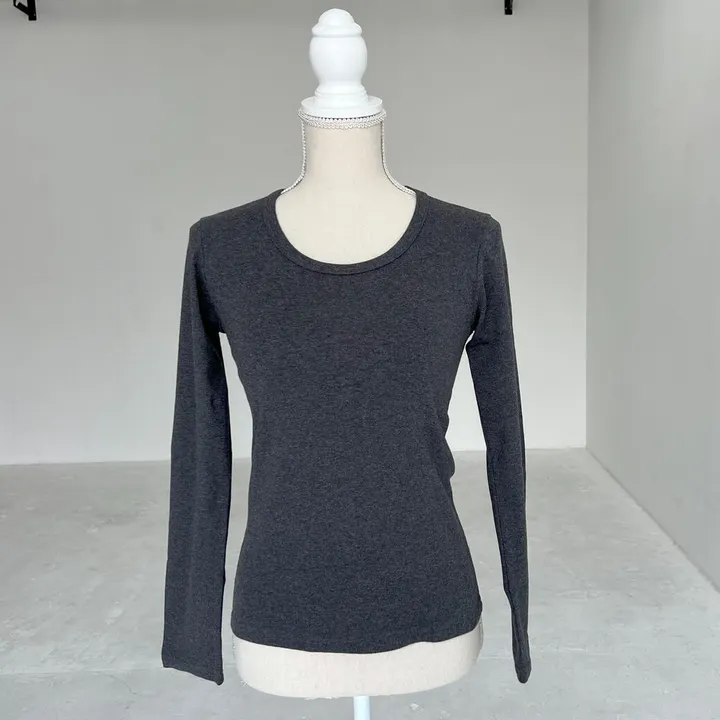 【日本製】丸胴コットンフライス_スクープネック長袖 ダークグレー 1-2サイズ