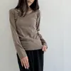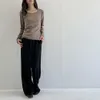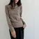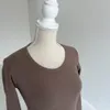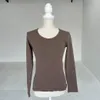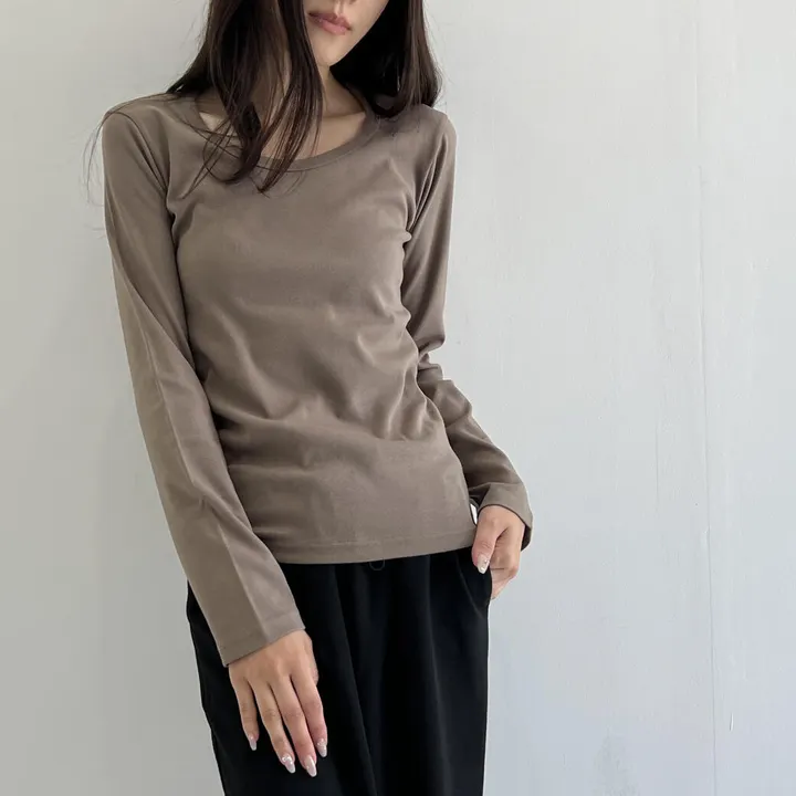 【日本製】丸胴コットンフライス_スクープネック長袖 モカ 1-2サイズ