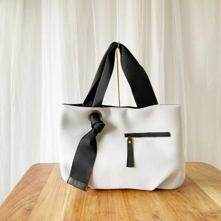 ネオプレーン調【Mサイズ】トートバッグ*A4収納可能 ホワイト(グレーよりです)