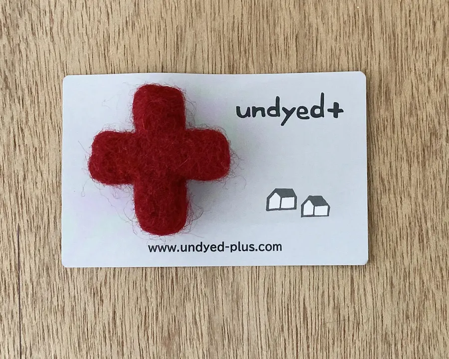 プラスの形をしたかわいいフェルトのブローチ。 ふわふわの羊毛を使って、もんで縮絨させてプラスの形にしていきます。最後はフェルト用のニードル針でチクチクと形を整えていきます。小さいけれどとても手間のかかったブローチです。 ひとつひとつ、手仕事で作られたこのフェルトブローチは縫い目がないのでフォルムも立体的でかわいらしくちょっとしたアクセントにピッタリです。 手作りのほっこりしたあたたかさを感じてください。 セーター、かばん、小物なににつけてもかわいいですよ。