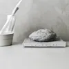 [ROCK SOAP DISH / ロックソープディッシュ ] 岩のようなテクスチャーのソープディッシュです。 材質には珪藻土、石膏、竹炭などが使われています。 吸水性と消臭効果を兼ね備えているので、ソープ置きとしては最適です。 ハードテクスチャ、ロックテクスチャスタイルは自然の美学を表現しており、ソープディッシュから部屋に飾るディスプレイプレートにまで、幅広くお使いいただけます。 [FEATURES] - 素材:珪藻土、石膏、竹炭 - パッケージ:リサイクルペーパー - 全てハンドメイドになるため、同じカラーでも写真と柄のパターンは少しずつ異なります。 [SPECS] - W 11.8 × H 8.3 × D 1.3 cm - 重量: 95g - カラー展開 : CLASSIC GRAY | MARBLE FLOW