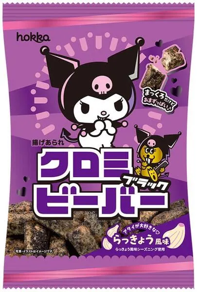 サンリオの人気キャラクター「クロミ」とのコラボ商品。 クロミのように黒色になった揚げあられは、クロミの好物であるらっきょう風味。 ツンとあまずっぱい、やみつきになる味わいです。