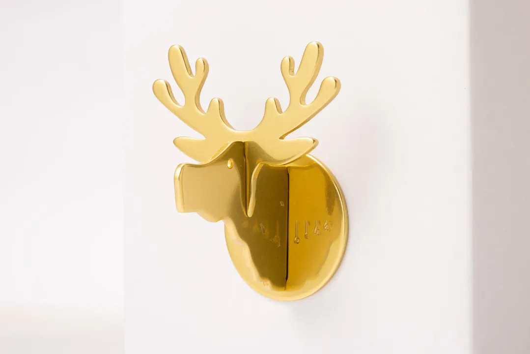 力強さや存在感を持つ動物たちをモチーフにした真鍮製ファイルボックスノブシリーズ。トナカイ、サイ、ゾウそれぞれの個性を、プレス加工で丁寧に抜き出したシルエットに表現しました。手に取るたびに感じる温かみのある質感と、使い込むほどに深みを増す真鍮の経年変化が、収納家具やデスク周りにさりげないアクセントを添えます。 ●優雅で凛とした姿のトナカイをモチーフにした真鍮製ファイルボックスノブ。プレス加工で丁寧に抜き出されたシルエットは、温かみのある質感と真鍮ならではの経年変化を楽しめます。デスク周りに自然な存在感を添え、収納家具をさりげなく個性的に彩るアイテムです。