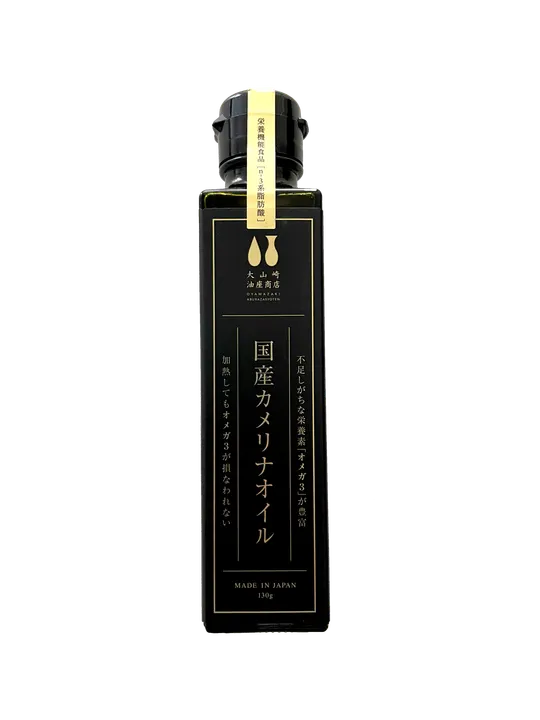 大山崎油座商店のカメリナオイルは、オメガ3脂肪酸を約35%、オメガ9脂肪酸を約32%、抗酸化成分ビタミンEを0.075%含むスーパーフードです。5年の歳月をかけて純国産化に成功しました。 “カメリナ”は、ヨーロッパで古くから親しまれている、アブラナ科の植物で、必須脂肪酸のオメガ3とオメガ6、不飽和脂肪酸のオメガ9が理想的なバランスで含まれているのが特徴です。また、天然の抗酸化成分“ビタミンE”も豊富なため、熱に弱いと言われるオメガ3の効率的な摂取が可能です。 私たちのものづくりのこだわり 1.” 完熟で収穫することで、まろやかな風味に仕上げています” 2.”薬剤や添加物を使用しません” 3."とことん国産でつくることにしました” 4."環境にやさしく、持続可能な栽培を行っています” 油の品質指標として使用される酸価数値は、オリーブオイルのエクストラバージンと同じ酸度0.8以下のオイルのみを使用。 受賞歴:2023年度 料理王国100選に選出。 Poco'ce BestBeautyAward2022に選出。