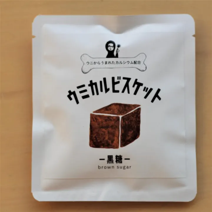 ウニの殻のカルシウムを生地に練りこみ焼き上げました。 丸干しに使用する塩を使用した「しお」 黒ごまとてんさい糖がさつまいもの風味を引き立てる「さつまいも」 食品添加物不使用の純黒砂糖が入った「黒糖」 ザクザクした食感が楽しい体に優しいビスケットです。