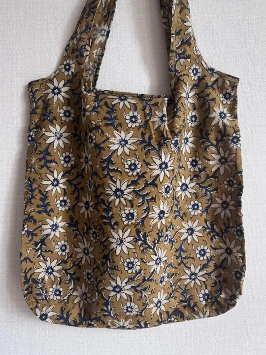 プレミアム・エコバッグ — 心をこめて、丁寧に作られた日常使いのバッグ 毎日使いたくなる、タイムレスなエコバッグ。 100%ハンドブロックプリントのコットンを使用し、インドの伝統的な職人技と使いやすいデザインを組み合わせました。柔らかくもしっかりとしたつくりで、折りたたんでポケットに収納でき、見た目も使い心地も抜群です。 このバッグについて 私たちのプレミアム・エコバッグは、日常の中に小さな喜びを届けたいという思いから生まれました。 一つひとつを丁寧に手裁ち・手縫いし、内側も外側もすっきりとした上質な仕上がりに。長くて幅広のストラップは肩にやさしく、バッグ本体に付いた収納ポケットのおかげで、ポーチをなくす心配もありません。さらに、小さなループを付けて、使いやすさをほんの少しプラスしました。 生地はインド・ラジャスタン州の職人によるハンドブロックプリントのコットン100%。私たちは、公正な価格で直接仕入れることで、伝統工芸を守り、職人たちの暮らしを支えています。プリントは肌にやさしく、色落ちしにくく、お手入れも簡単。ご家庭で洗濯やアイロンがけができます。 シーズンごとに新しい柄を発表し、毎回新鮮なデザインを楽しんでいただけます。 お客様からは「とても丈夫で、どこに行っても褒められる」と嬉しい声をたくさんいただいています。スーパーへのお買い物、ビーチへのお出かけ、旅行や普段使いなど、さまざまなシーンで活躍します。 そして、私たちはサステナブルブランドとして、地球への影響を常に考えています。多くのエコバッグが合成素材や再生プラスチックで作られている中、私たちは自然素材のコットンを選びました。洗えて、直せて、長く使えて、最後は自然に還る。このバッグは、機能的で美しく、そして環境にもやさしい存在です。