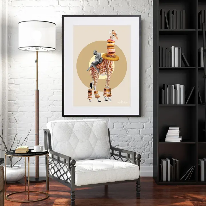 アーティスト -PROFILE- Yuria Oku(ユリア オク) Leirion Hand Creation 北海道出身 アートディレクター/デザイナー 広告やグラフィックデザインの仕事をしながら、自身ではコラージュアートや写真撮影、イラストなど幅広く活動。 写真とイラストのコラージュや合成など現実にはない、不思議で奇妙な作品を得意とする。 ファッション広告を想定とした作品も制作している。 【作品について】 作品名:donugiraffe 手法:デジタル、コラージュ ペーパー:高品質半光沢紙 マットカラー:白 マット*:DXホワイト芯 100%バージンパルプ/PH7・中性紙(2mm厚) ※全てのアートにマットがつきます フレームカラー:黒、白、無垢(3種類から選択) ※マット付のため通常とはフレームサイズが異なる規格となります。 【マット*とは?】 アートポスターの周りに挟んだ厚紙の事。 マットを使わない時に比べ余白により広がりが生まれ、作品の新たな一面を引き出せ作品の見栄えがグッと良くなります。また、額縁のガラス面と作品が直接触れたままにしておくと、くっついて作品を傷つけることがあります。マットを使用することでガラスと作品の間に空間ができ、作品を保護することができます。ブランドコンセプトにより全てのアートにマットがつきます。 ー ファッションのようにアートを ー 私達が掲げるコンセプトです! 毎日着替えるファッションの様に、アートも気軽に飾り変えて欲しい... 一旦飾り終えたアートにも光を当ててほしい... ポスター単体、またはリピートで中身だけのポスターを購入された方に"専用のハンガー"をセットでお届け。 「今までに無い!新しいアートの飾り方を提案」 飾る事がなくなった前のアートをハンガーにかけて洋服と一緒にかけてもらう。 その日の気分や、モチベーションですぐに取り換えられる様に。 もちろん、魅せる収納としても今までにないおすすめの飾り方です。
