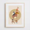 【現代アートポスター】動物 キリン ドーナッツ お菓子 おしゃれ 写真コラージュ A4(S) フレームセット:無垢 30.4×39.4cm