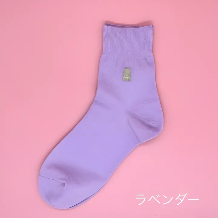 ワンポイントに3Dのグミベアが付いたソックスです。 カラーバリエーション豊富なのでスタイリングのアクセントにお気に入りの1色を 選んでみてはいかがでしょうか。
