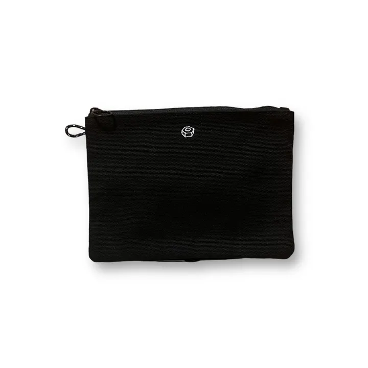 手触りの良いコットンキャンバス生地でできた、使い勝手の良いサイズの至ってシンプルなフラットポーチです。 BAG in BAG として小物類の収納にも最適です。 別名『乙女ポーチ』♡ ww ナットの刺繍がアクセントになってます。