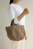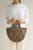 厚手のキャンバス生地にボールドなスティッチ。 コロンとしたシルエットが印象的なトートバッグ 開口部にスナップボタン、内側にファスナー付きポケット1つ。