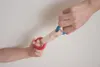LEGAMEはイタリア語で「絆」の意味。 赤ちゃんの握る力でリングを掴み、自分で動かしたり親子で引っぱり合ったりすることで楽しく遊びながら絆を感じることのできるラトルです。 赤ちゃんは手や指を使って色んなモノを感じて日々学んでいます。手は「第2の脳」と言われているようにその運動は脳の発達をうながしています。「LEGAME」 は握ったり、捻ったり、引っぱったりなど、赤ちゃんの手の運動が出来るように小さな持ち手が両側にあります。