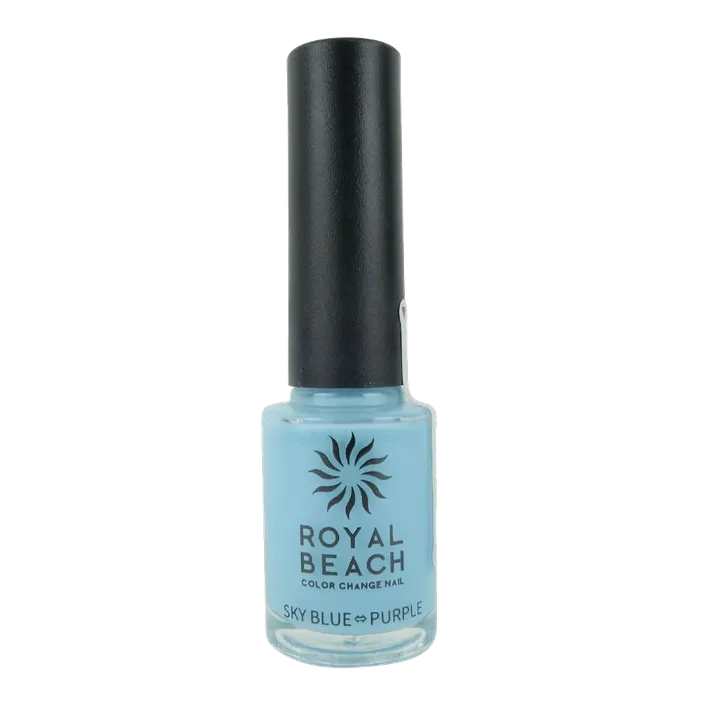 太陽の下が特別な場所に… 太陽の光(紫外線)に反応して色が変わる世界初※のマニキュア! ROYALBEACH カラーチェンジネイル ※世界で初めてINCI登録された化粧品グレードの調光原料を使用 屋内と屋外・昼と夜など、シーンや天候によって指先に違うカラーを纏う進化系ネイル 太陽の光(紫外線)に反応して色が変わり、紫外線が遮られた状態になると、あっという 間にベースカラーに元通り! 何度もカラーチェンジをお楽しみいただけます♪ 紫外線量に応じて色が変化するので、色の変化度合いを利用してオシャレを楽しみ ながら、一目でUVチェックもできます。 ご使用方法 ・通常のマニキュアと同様で、爪に塗布して乾燥させるだけ! ・ネイルオフもお手持ちのリムーバーでOK ポイント ・重ね塗りすることでよりはっきりとカラーチェンジをお楽しみいただけます。 ・トップコートをご使用の際は、トップコートの厚みにより色が変化しにくく なる場合がございますので、トップコートの薄塗りを推奨しております。