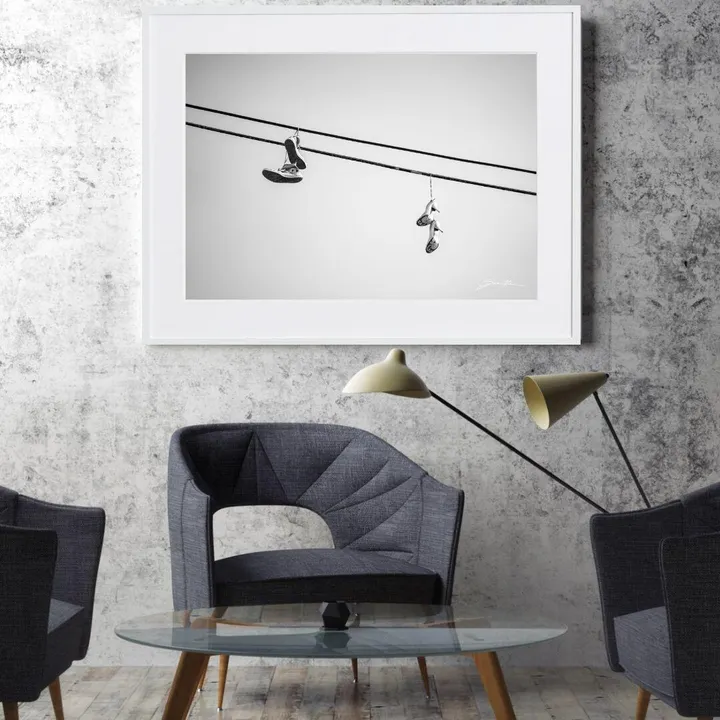 【現代アートポスター】ロサンゼルス LA モノトーン スニーカー&ハイヒール 写真 PHOTO A2(L) フレームセット:白 55.1×73.3cm