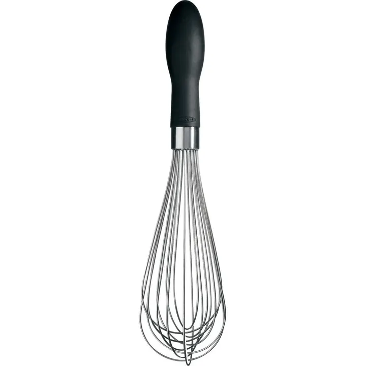 手のひらにすっぽりと収まり、力のいる作業でも手への負担が少ないグリップ 調理中の濡れた手でも滑りにくい、柔らかくて持ちやすいグリップで快適な使い心地のウィスクです。丈夫でしっかりしたステンレスワイヤーで、少ない力でしっかり混ぜることができます。 卵はもちろん、生クリームの泡立てやメレンゲ、パンケーキ生地など、幅広く使える万能なサイズです。他に小サイズもありますので、調理シーンにあわせてお使いいただけます。 漂白剤はご使用いただけません。食器洗い乾燥機(低温設定)がご使用いただけます。