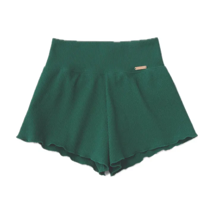 ボトムスの中にショーツをセットしたルームウェア。 むれやすいマチ部分は、おりものなどの少量の水分をすぐに吸収拡散するこだわりの素材を採用しているので、いつでも履いた直後のようなサラっとした着用感が続きます。 身生地はワッフルのようにマス目状の凸凹のある生地で、やわらかく、身体を包み込んでくれるような優しい肌触りです。