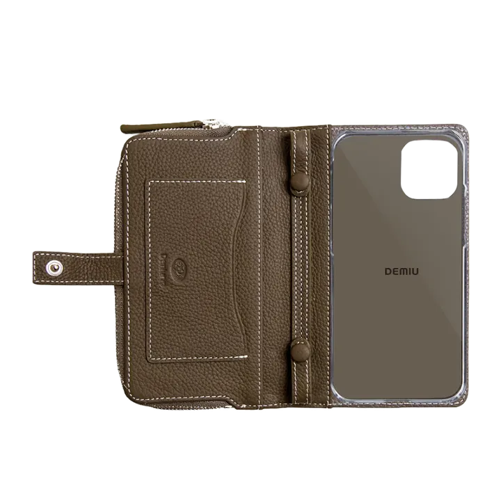2023年9月より弊ブランドはDemiurvo(デミウルーボ)改めDEMIU(デミュウ)に改名いたします。 それに伴い、DEMIUの名を配したブランドネーム・ロゴが採用されます。 一部商品に関しては、Demiurvoとして引き続き販売いたしますが順次モデルチェンジ予定です。 何卒、ご理解のほど宜しくお願い致します。 <レミーポシェフラット> ラウンドジップのついた収納力抜群のスマートな手帳型ケース。 選び抜かれた上質なフランス産牛革を使用。 ジップにはYKKの最高品質EXCELLAファスナーを使用。 ラウンドジップ内は仕切りあり、内側にはカード入れ、隠しポケット付き。 ケース部分はポリカーボネートクリアケースを採用。 別売りのストラップを装着することでショルダー使用も可能。 【No Wallet , Hands Free】(手放し、財布入らず)を実現できる、デミウルーボのコンセプチュアルモデル。 ※ストラップは別売りです。 ー仕様ー・素材本体:牛革ケース部分:ポリカーボネート金具:ニッケル・重量約145g ・内側カード入れサイズ 縦:約5.1cm 横:約9.4cm