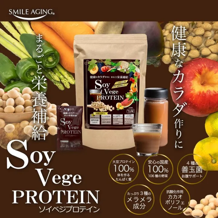 【サンプル】貧血/ダイエット/肌荒れ/腸活/ 乳酸菌&ビフィズス菌&国産酵素入りのプロテイン SoyVegePROTEIN(ソイベジプロテイン) (15包入り)