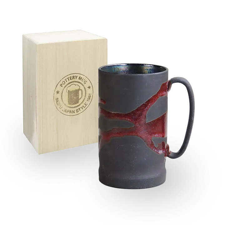 陶器(pottery)製の大きなマグカップです 大容量の600cc入ります ロング缶も1本丸々入る大きさです 職人の手によって一つ一つ柄杓でかける釉薬がそれぞれの商品に違った表情を醸し出します