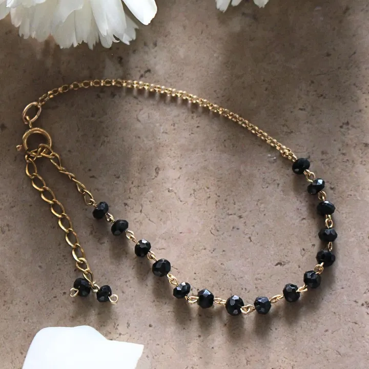 ブラックスピネルのブレスレットは 光を集めてキラキラと輝きます。 ブラックスピネルはその艶やかな黒に魅せられる方が多い 人気の天然石です。 アジャスター先端のペアの天然石が 動きに合わせて揺れる様もかわいらしく、 お守りのように身につけたい美しいブレスレットです。 ブラックスピネル KEYWORDs: エネルギー/潜在能力/気力/前進/チャレンジ ◆次回の入荷は未定です。現在のところ在庫限りの商品となります。 ~天然石のブレスレット~ 自然が長い年月を経て創り出した美しい天然石の魅力を、 最大限に感じられるようなブレスレット。 ご自分がピンとくるお気に入りの天然石が、 まるでお守りのようにも感じられるかもしれません。 日々の中で、身につけるたびに小さな幸せを感じられる。 そんなアイテムを揃えています。 ~素材へのこだわり~ RIVA GOSSIで扱っているアクセサリーの中で 基本的に、直接肌に触れるパーツ金属部分は ゴールド色は、14KGF(14Kゴールドフィルド) シルバー色は、SV925(銀92.5%/スターリングシルバー) これらの素材で制作しています。 直接肌に触れない部分に関してはメッキ素材を使用することもあります。 ページ内の原材料表示部分をご確認ください。 14KGF(14Kゴールドフィルド)とは、 かなり厚い層で14Kコーティングした素材で、 金属アレルギーを起こしにくいといわれています。 ※全ての方にアレルギーが起こらないわけではありません。 ほとんどはがれることはなく、 欧米などではポピュラーな素材です。 金メッキ素材よりも値がはりますが、 14K-18Kなどよりお求めやすく、 天然石のアクセサリーを、 より身近に楽しむことができます。 お客様に安心してアクセサリーを選んでいただけるように 素材にもこだわっています。 ◇天然石は自然が作り出したその特性上、個体差のあるものです。 可能な限り同様のイメージを保つよう選別しておりますが、 量産品ではないため、何卒ご理解くださいませ。