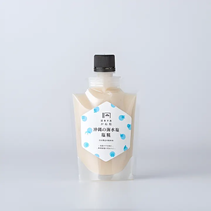 自社製の「米糀」と沖縄の海水塩「青い海」で仕込んだ塩糀。 角のとれた天然塩と糀の旨味が素材を引き立てます。 オススメの使い方 塩糀ドレッシング ・塩糀 大さじ3 ・酢 大さじ1 ・オリーブオイル 大さじ1 ・ブラックペッパー 少々 材料の分量を調整して自分好みの味をみつけてください。