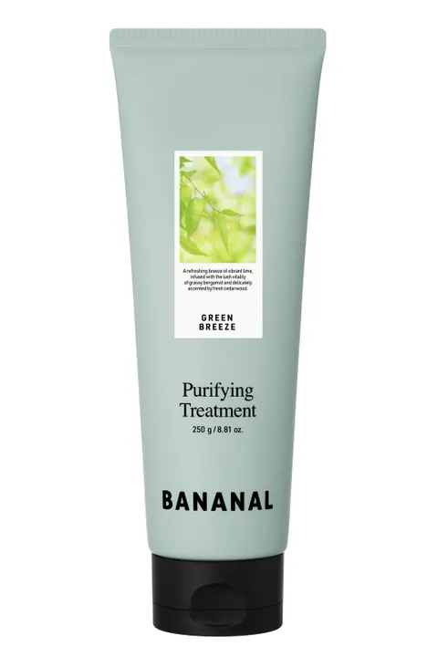Bananal Purifying treatment Green breeze 髪にモイスチャーケア 水分たっぷりトリートメント 過度に増えた皮脂ケア成分 ANTI SEBUM-P* 過度な油分によって脂っぽくなった頭皮に毛穴ケア成分で 毛穴の引き締め&鎮静ケア *原料の特性に限る しっとりして軽いウォータークリームタイプのテクスチャーで サラサラ・柔らかい髪にケア 午後になると脂っぽくなる髪、髪の毛の油分は減らして頭皮はしっとりにケアしたい ピュリファイングトリートメントで爽やかに揺れる髪の毛とともに 最適の油分・水分バランスケアを経験してみてください。