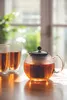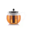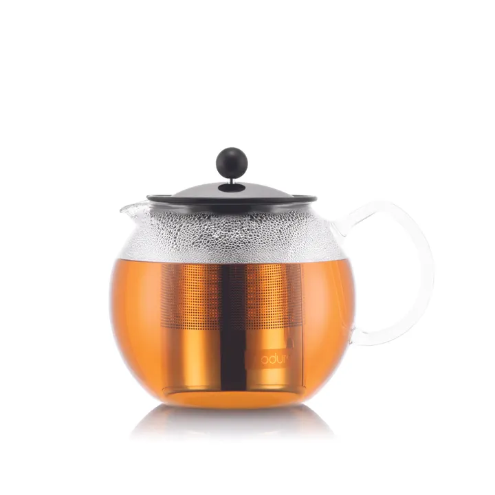 今から30年前に英国紅茶協会の依頼により開発され、ボダムがそれまで培ったフレンチプレスのノウハウを生かし、ティーポットにもプレス式を採用。このユニークな抽出方法は、フィルターの穴の開いていない底部に茶葉を閉じ込め、過抽出を防止するともに、茶葉をお好みの濃さに抽出します。