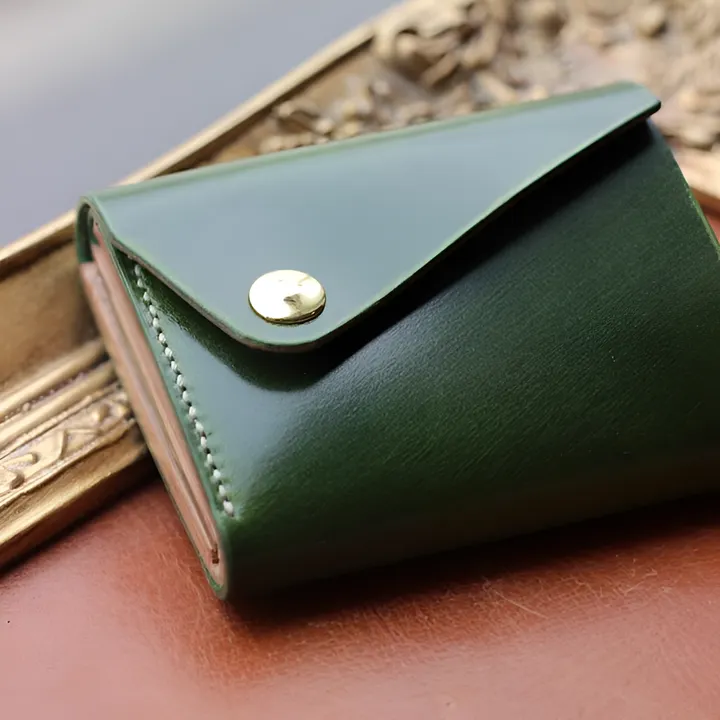 [スマホより小さい三折り財布]ボタン1つで全開閉でき、全て本革で仕上げた上質な機能的ミニ財布 Hisui