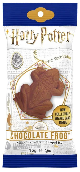 カエルの形をしたライスクリスプ入りミルクチョコレート。ウィザードカード入り。