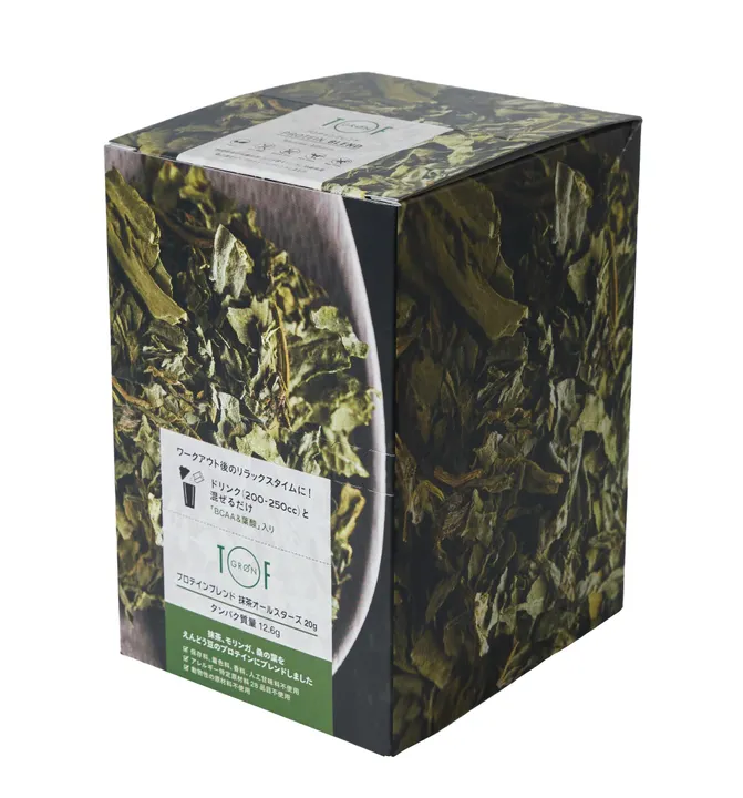 トレーニングジム トータルワークアウトと共同開発した、「体づくり」をコンセプトにしたプロテインパウダーの、お得な飲みきりパック20g・12回分です。有機抹茶とモリンガや桑の葉を、ピープロテイン(えんどう豆由来)にブレンド。アレルギー特定原材料等28品目不使用、食品添加物や人工甘味料も一切使用していません。 <商品紹介>1袋あたり、タンパク質12.6gを含有。体づくりには欠かせない BCAA(分岐鎖アミノ酸)2088mgに加え、鉄分や亜鉛、カルシウムも豊富に含有、葉酸も含有しています。トレーニング後のリラックスタイムをサポート、ナチュラル志向の方でも安心して使える「トレーニング後」の、栄養補給・リカバリーを目的としたプロテインブレンドです。食生活、食習慣や野菜不足の改善、体のバリアのサポートにもおすすめです。スーパーフードとして世界中から注目を集める抹茶。茶会品質の「NODOKA」ブランドの静岡県産有機抹茶のものを使用しています。原産国インドの自生に近い環境で栽培した「奇跡の木」モリンガ、栄養価に優れた沖縄県産の桑の葉など、サステナブルなグリーンスーパーフードをブレンドしました。カルシウムやトリプトファンも含まれるため、ワークアウト後のリラックスタイムやリカバリーにも最適。筋肉トレーニングをサポートするのでワークアウト後の摂取をお勧めしています。素材そのものの味を生かしているので、あらゆるドリンクとの相性に優れています。タンパク質に加えて、葉酸やビタミン類、鉄分や亜鉛などのミネラル類も豊富に含まれているので、一緒にとることができます。 <こんな方にオススメです>・トレーニングを効果的にしたい方・ストレス社会で頑張る方・ダイエットをしている方・鉄分や亜鉛、カルシウムが不足していると感じる方