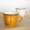 たっぷりサイズの大きなマグカップ。大容量の350ccです。 ホットドリングだけでなく、フルーツウォーターやスムージーなど、コールドドリンクも楽しんでくださいね。 カラーも豊富で選ぶのが楽しみです! こちらトパーズは明るめのカーキブラウン(黄土色)です。 和食器とも合わせやすいやさしい印象です。 お手入れが簡単な磁器製で食洗機や電子レンジもご利用いただけます。