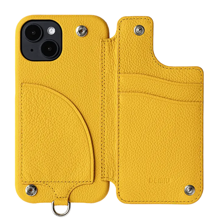2023年9月より弊ブランドはDemiurvo(デミウルーボ)改めDEMIU(デミュウ)に改名いたします。 それに伴い、DEMIUの名を配したブランドネーム・ロゴが採用されます。 一部商品に関しては、Demiurvoとして引き続き販売いたしますが順次モデルチェンジ予定です。 何卒、ご理解のほど宜しくお願い致します。 フランス語で「風船」を意味するBALLON(バロン)。 風船のようなモコモコしたテクスチャーをデザインしたお財布機能つきiPhoneケース。 上質なレザーの質感と指にフィットする感覚が心地よいモデルです。 思わず目を惹かれるデザインと質感で存在感抜群のアイテムです。右扉の内側に2段のカードスリットと隠しポケット、左側に収納ポケットを備えた便利なアイテム。 蓋をスタンドにして横置きできるのでYouTubeやテレビ会議にも便利。 ショルダーなどを付けられるD型リングが付いているので、別売りのストラップとのセットや色違いでコーディネイトするのもおすすめです。 ※iPhone12 miniおよび13miniの背面のカード入れに関してですが左側(ケース装着側)の仕切り部分と、右側の裏ポケットにはカードはお入れいただけません。右側のカード入れにはカード段が1つの仕様となります。ご注意ください。※ストラップは別売りです。 ー仕様ー ・素材 本体:フランス産牛革 ケース部分:ポリカーボネート ・重量 約62g