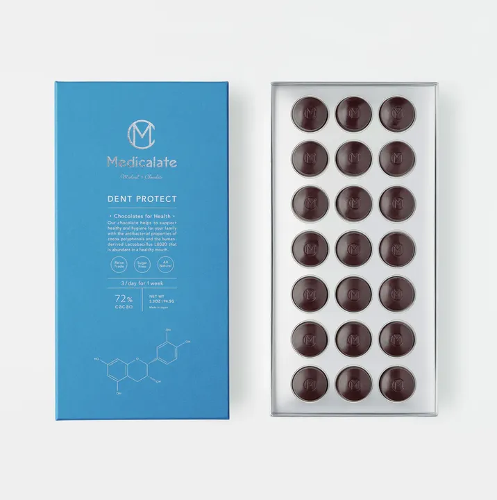 科学が引き出す、カカオの深淵 アリバ種カカオ × カミーノベルデ農園の精密発酵 エクアドル産の希少なアリバ(ナシオナル)種カカオを使用。 科学的データに基づき、発酵の全工程を精密に管理する「カミーノベルデ農園」の豆を厳選しました。 カカオ72%の力強い風味と、雑味を削ぎ落としたクリアな後味。医学的知見に基づき、就寝前でも心地よくお楽しみいただける洗練された余韻を追求しました。 特許取得成分 L8020乳酸菌 広島大学・二川教授によって発見された、ヒト由来の乳酸菌「L8020」を配合しています。 砂糖不使用のヴィーガン仕様でありながら、良質なカカオの脂質がもたらす滑らかな口どけが特徴です。 健康の入口であるお口の中から、全身の健やかさを整える。サイエンスとクラフトが共鳴する一粒です。